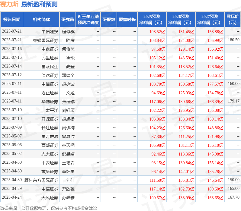华安证券股份有限公司刘千琳,张志邦,陈佳敏近期对赛力斯进行研究并发布了研究报告《Q2销量环比翻倍股票推荐平台,上半年净利润高增》,给予赛力斯买入评级。